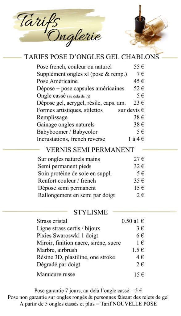 Tarifs onglerie
